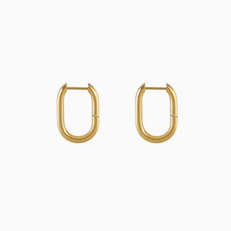 Make a statement with our Paperclip Hoop Earrings! Crafted from 18K gold plating, this piece is made to last. Add these oval-rectangular shaped earrings to your gold jewelry collection today.