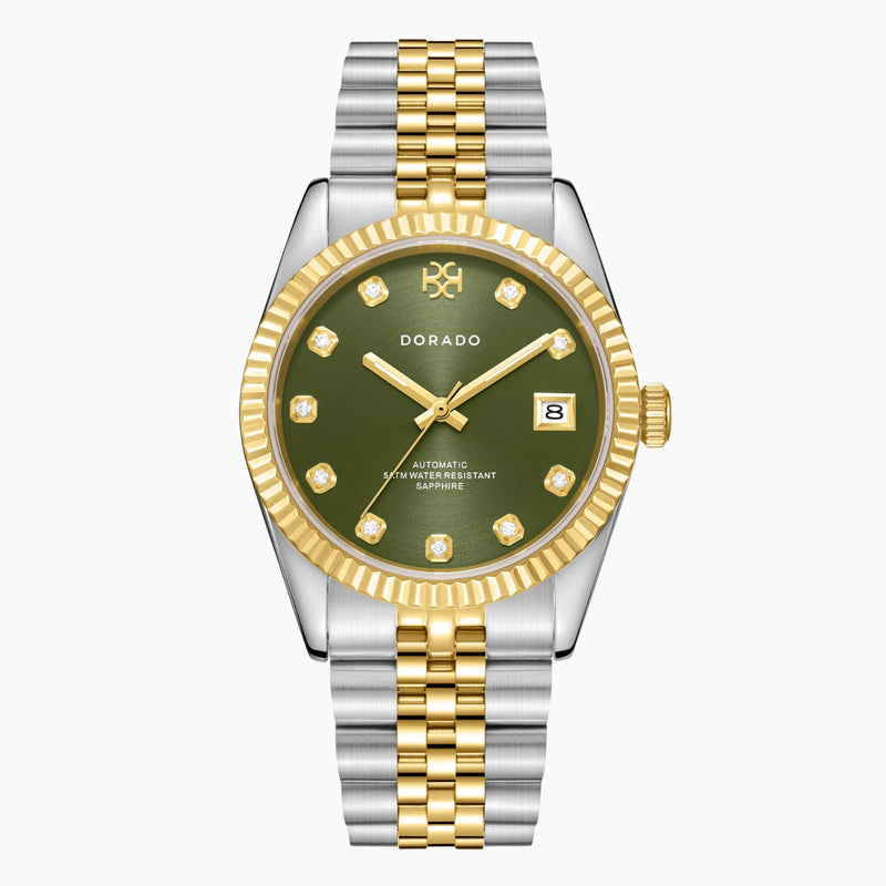 Experience timeless sophistication with DORADO's Two Tone Timeless Watch. Crafted with exquisite precision, this automatic watch embodies a seamless blend of artistry and engineering. It stands not just as a timepiece but as a masterpiece of craftsmanship, exuding style and refinement.