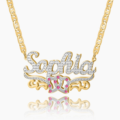 Kids Double Plated Double Heart Name Necklace w/ Clip Chain